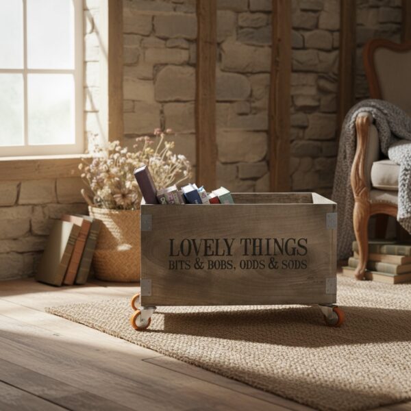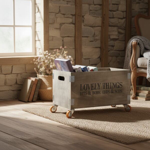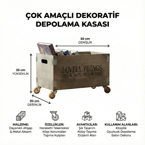 Tekerlekli Doğal Ahşap Depolama Kasası & Çok Amaçlı Dekoratif Düzenleyici Sandık