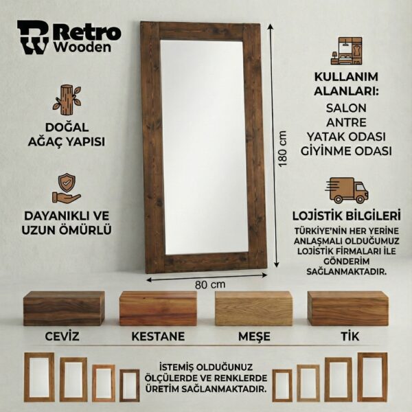 Doğal Rustik Ahşap Boy Aynası