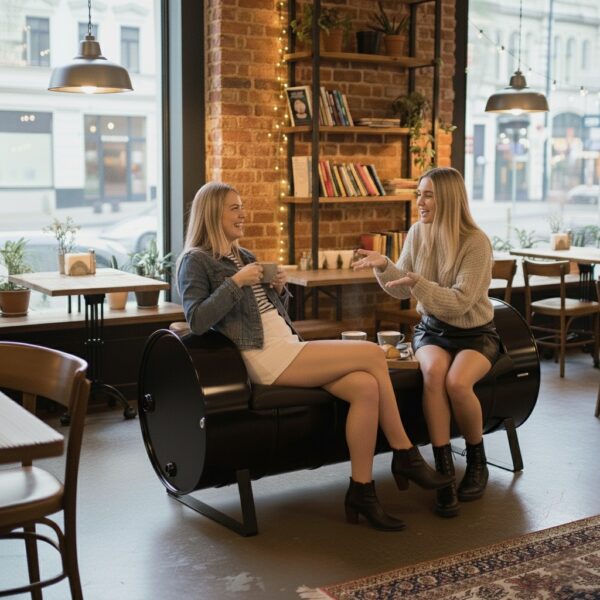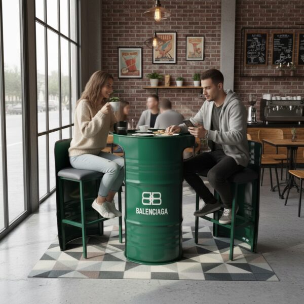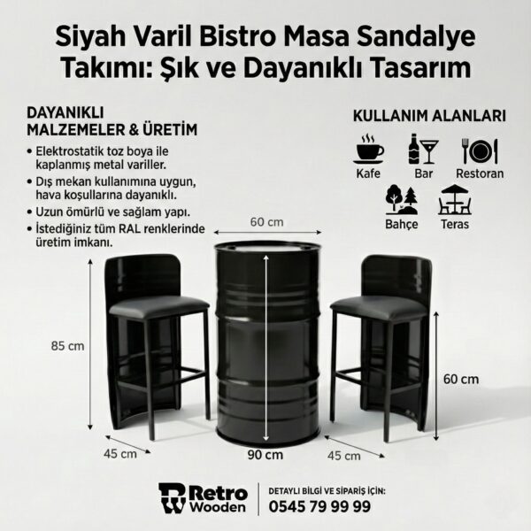Retrowooden Endüstriyel Tasarım Siyah Varil Lavabo – Ahşap Raflı & Özel Logolu
