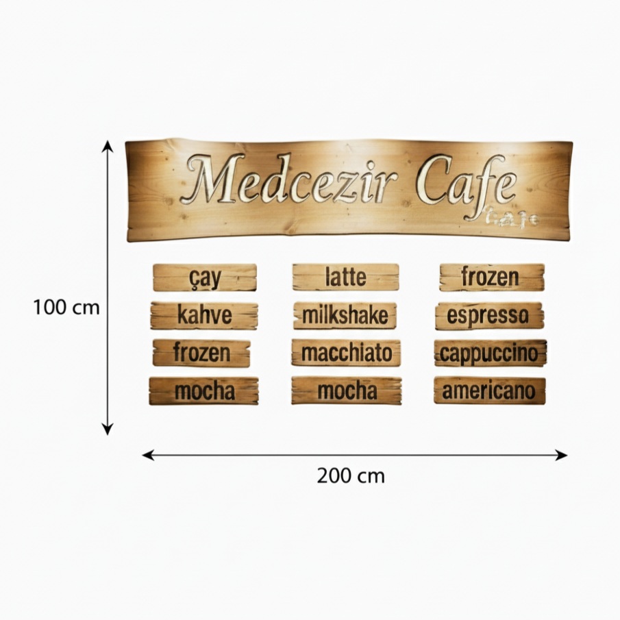 * Tasarım Karakteri: Nostaljik ahşap tabela görünümü ve el yapımı rustik detaylar.
