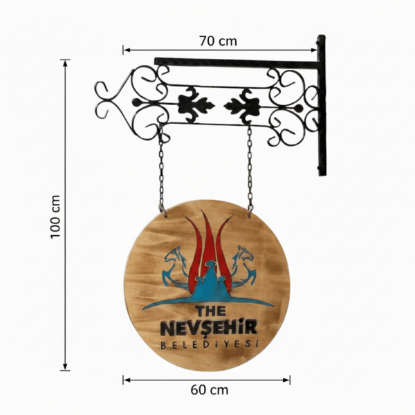 Standart ölçümüz (60 cm çap) ve ferforjemiz için fiyatımız sabittir. Ancak ahşap tabela fiyatları, istenen ekstra büyük ölçülere veya çok karmaşık özel kesim taleplerine göre değişiklik gösterebilir.