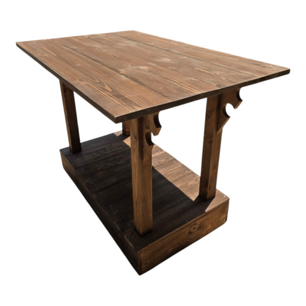 Bu ahşap masa, sadece estetiğiyle değil, fonksiyonelliğiyle de öne çıkar. Alt kısmında bulunan geniş raf alanı sayesinde, bu raflı masa size ekstra depolama ve sergileme imkanı sunar. Yemek takımlarınızı, dekoratif objelerinizi veya kitaplarınızı yerleştirerek kişisel tarzınızı yansıtabilir, masa üzerinde dağınıklığı önleyebilirsiniz.