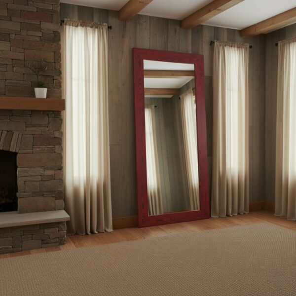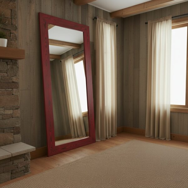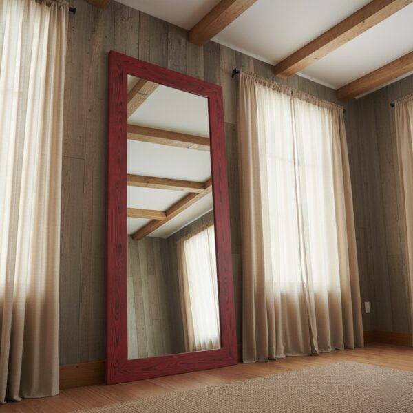 Doğal Masif Ahşap Rustik Boy Aynası – Dekoratif Çam Çerçeveli Salon ve Yatak Odası Aynası