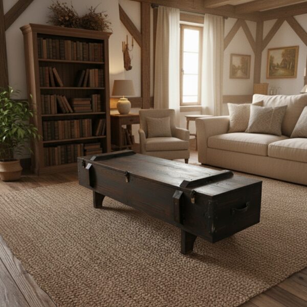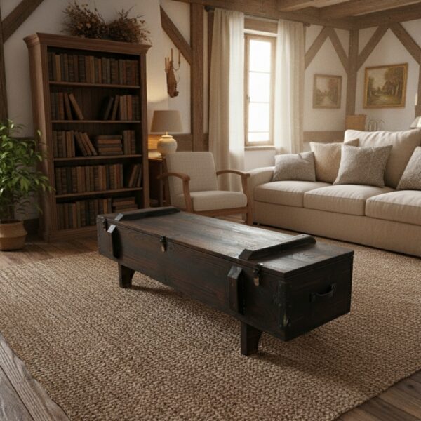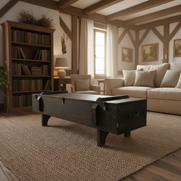Mühimmat sandığı ve eski yük sandıklarından ilham alınarak tasarlanan bu model, “Endüstriyel Rustik” tarzı sevenler için eşsiz bir tamamlayıcıdır. Sadece bir orta sehpa değil, aynı zamanda dağınıklığı ortadan kaldıran devasa bir saklama kutusudur.