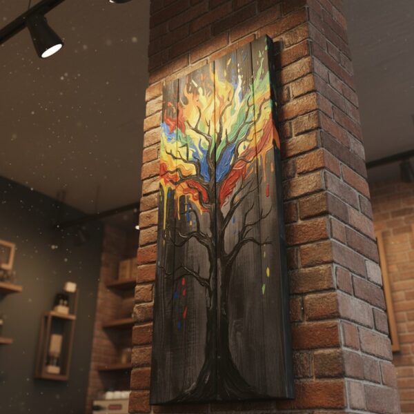 ‘Renklerin Enerjisi’ Temalı Hayat Ağacı Figürlü El Yapımı Masif Ahşap Duvar Panosu – Modern ve Rustik Sanat – 2