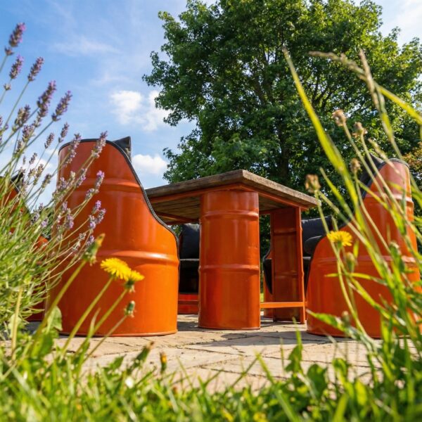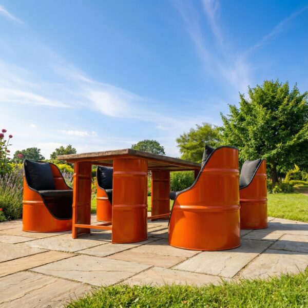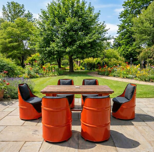Cafe, restoran, otel ve bahçelerinizde sıradanlığın dışına çıkın! Retro Wooden güvencesiyle üretilen bu özel tasarım varil masa ve sandalye takımı, endüstriyel tarzı konforla buluşturuyor. Tamamen sıfır varillerden (kimyasal atık görmemiş temiz sac) üretilen setimiz, mekanınıza hem modern bir hava katıyor hem de uzun ömürlü bir kullanım sunuyor.