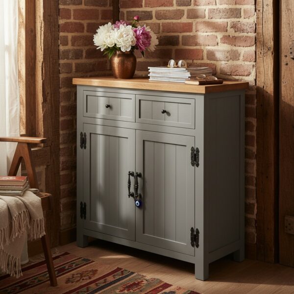 * Metal Aksesuarlar: Dolabın kulpları ve menteşeleri, dayanıklılık ve şıklık için pirinçten özel olarak üretilmiştir. Bu detaylar, dolabın rustik karakterini güçlendirir.